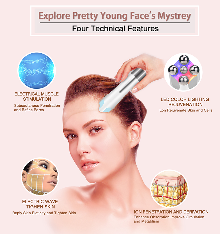 MI AZ ELŐNYÖK? -- A Beauty Machine egy többfunkciós öregedésgátló eszköz, amely rádiófrekvenciás (RF) technológiát tartalmaz vörös/kék fényterápiával, EMS-t a vonalak és ráncok csökkentésére, javítja a bőr behatolását és a felszívódási képességét stb.