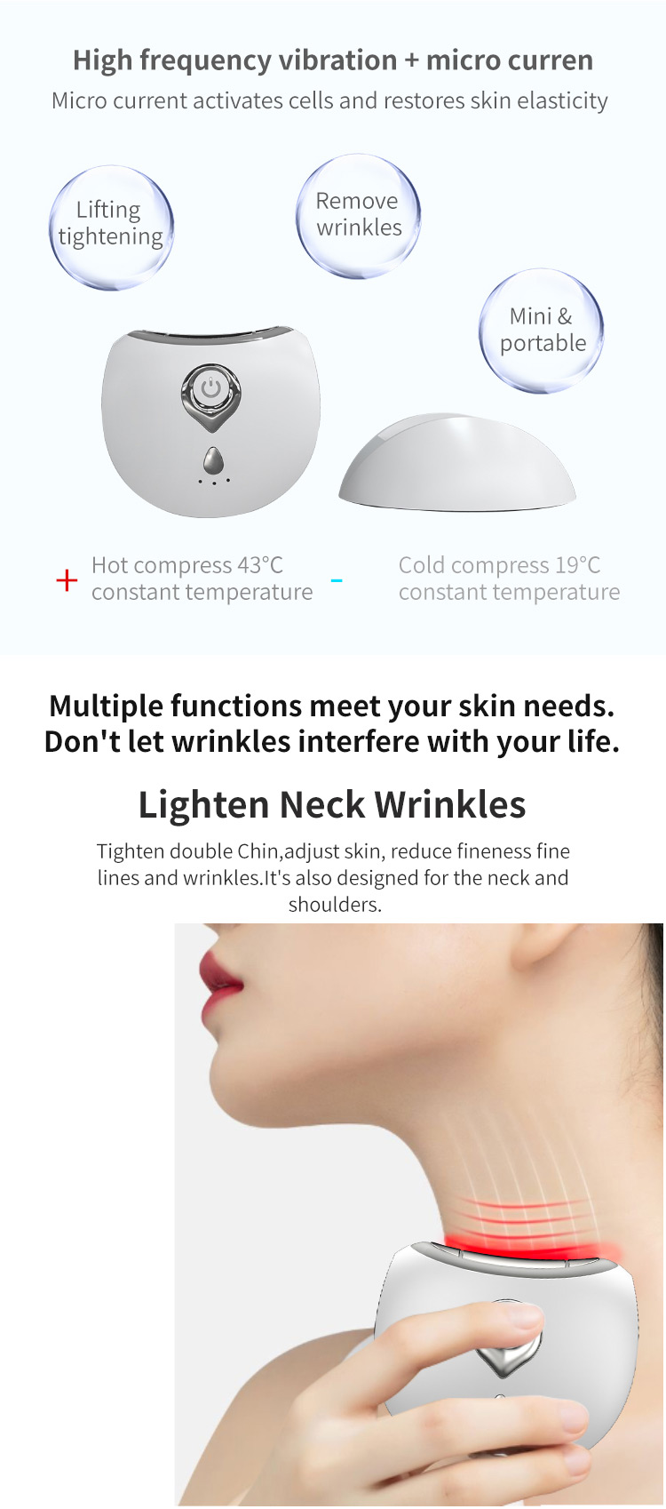 EMS és nagyfrekvenciás vibráció, simítja a finom vonalakat és távolítsa el a nyaki ráncokat
