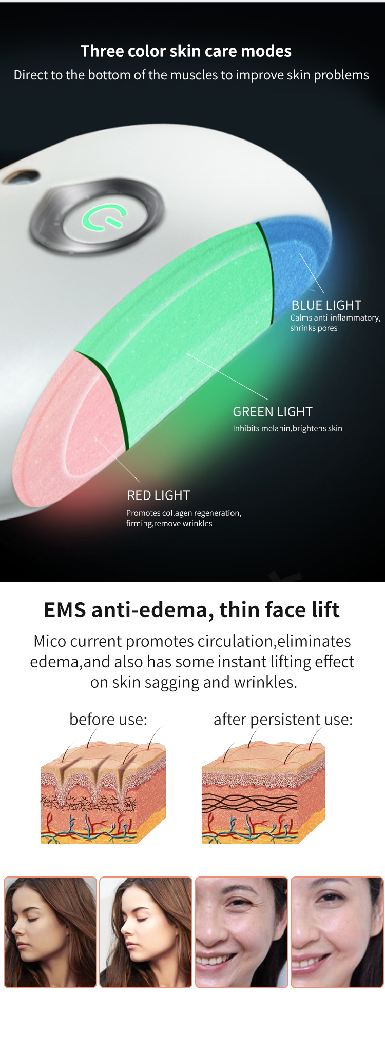 3.EMS mikroáram, növeli az izommozgást, feszesíti és emeli a bőrt